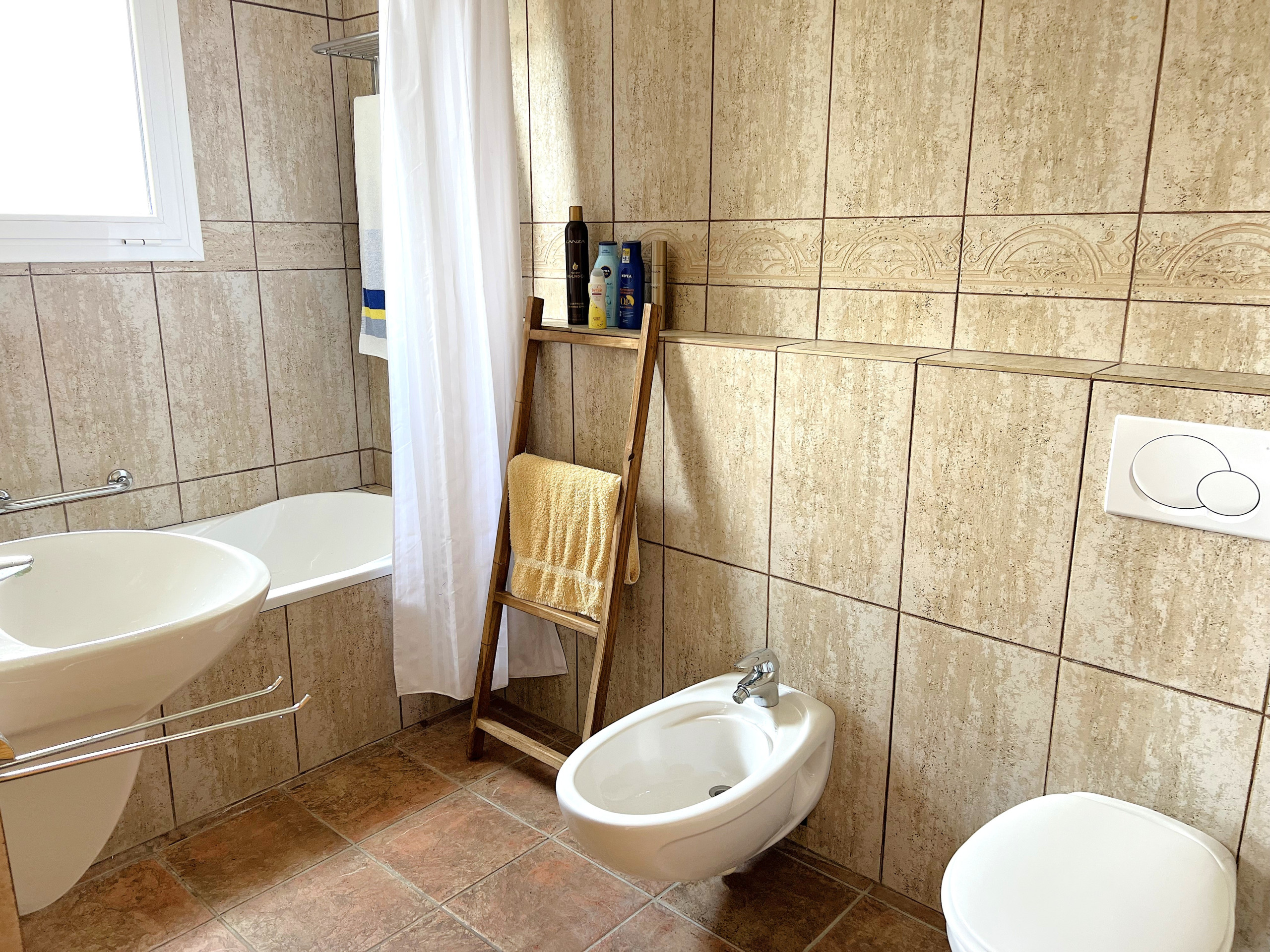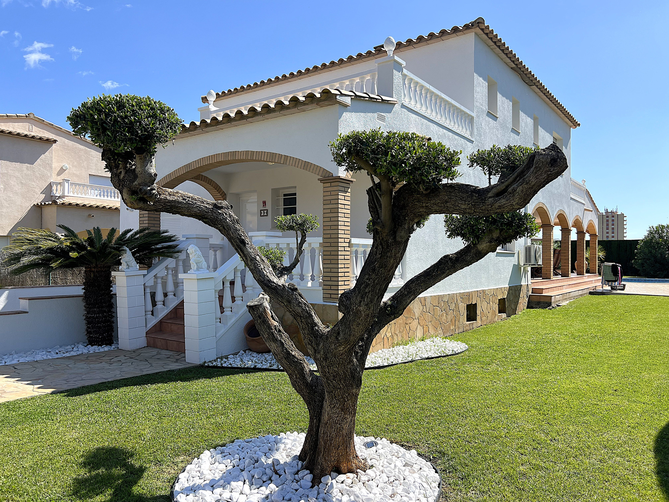 Im Inneren vereint die Villa Komfort und Bequemlichkeit mit einem gemütlichen Wohnzimmer, einer voll ausgestatteten Küche sowie großzügigen Schlafzimmern und Bädern, ideal für Familien oder Gruppen. Draußen erwartet Sie Ihre eigene private Oase: ein wunderschöner Garten, eine überdachte Terrasse und ein einladender Pool mit Sonnenliegen – perfekt zum Genießen der spanischen Sonne.