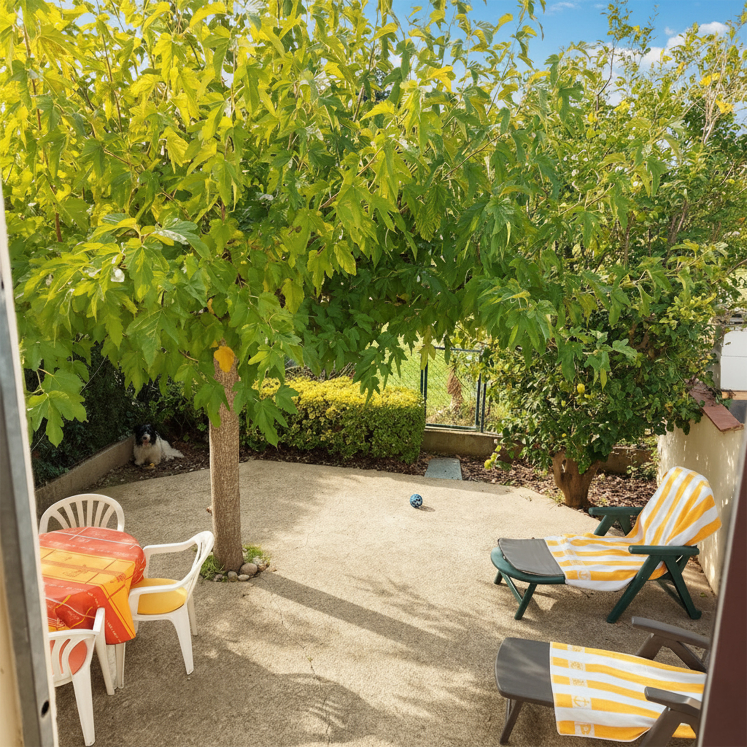 En el exterior, disfruta de una terraza privada, un jardín vallado, tumbonas y una barbacoa, ideal para comer al aire libre y relajarse bajo el sol. La casa también incluye wifi, aire acondicionado, calefacción central, televisión, lavadora y aparcamiento al aire libre delante de la casa.