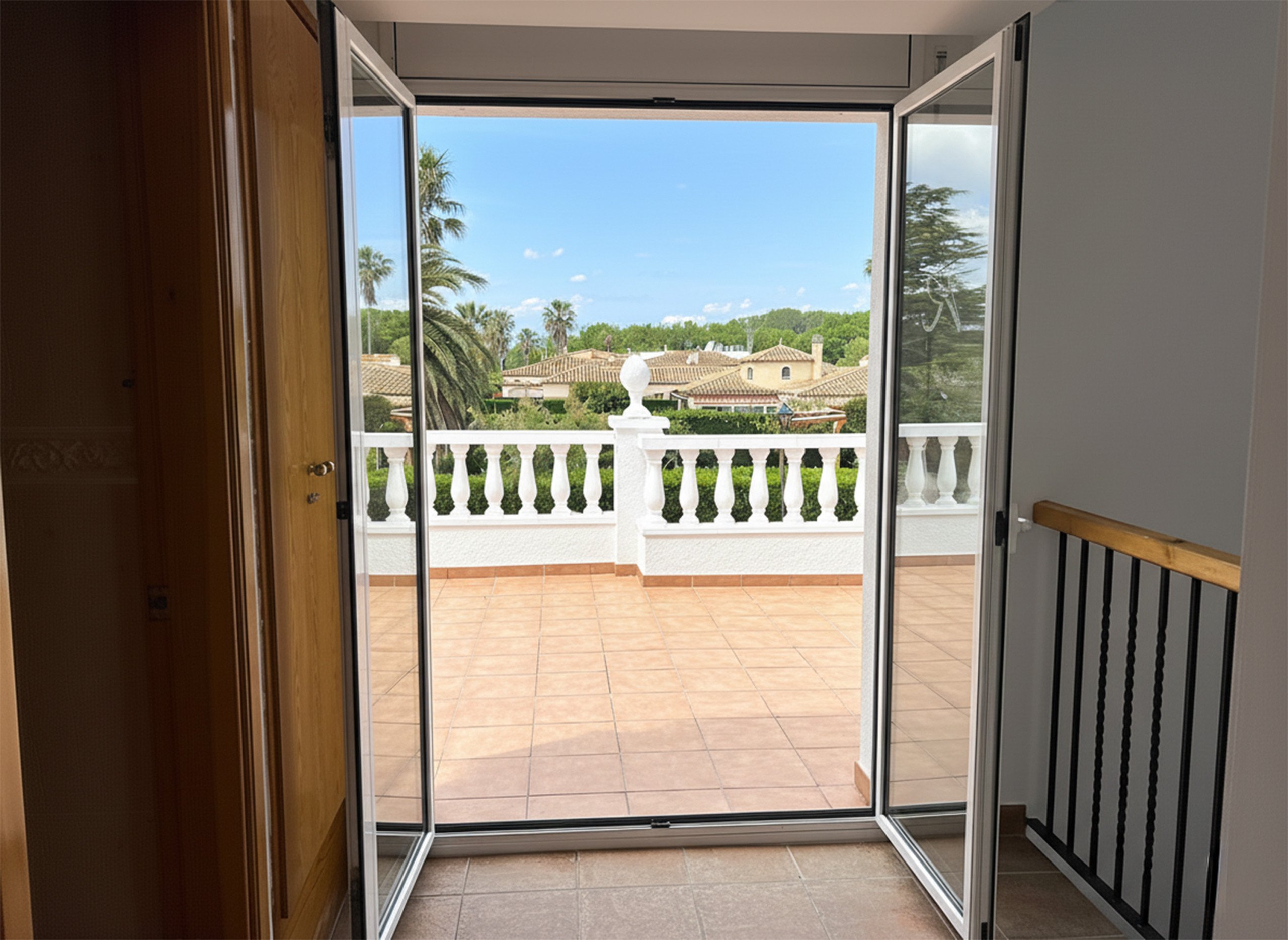 Inside, the villa combines comfort and convenience with a cozy living room, a fully equipped kitchen, and spacious bedrooms and bathrooms, making it perfect for families or groups. Step outside and enjoy your own private oasis: a beautiful garden, covered terrace, and an inviting pool with sun loungers, ideal for soaking up the Spanish sun.